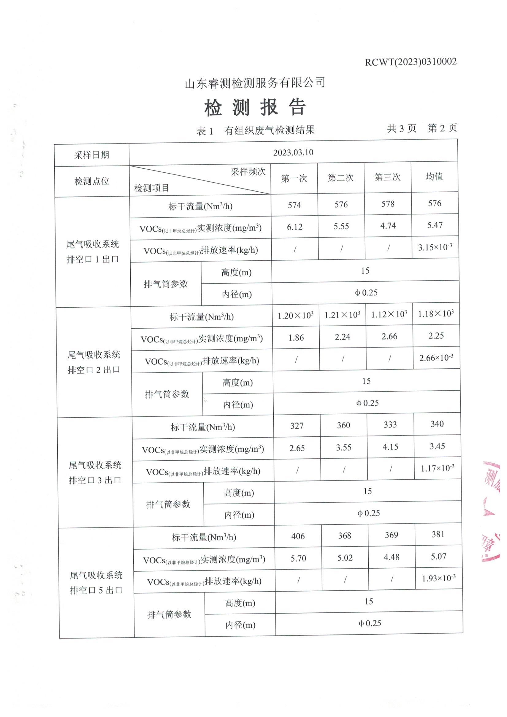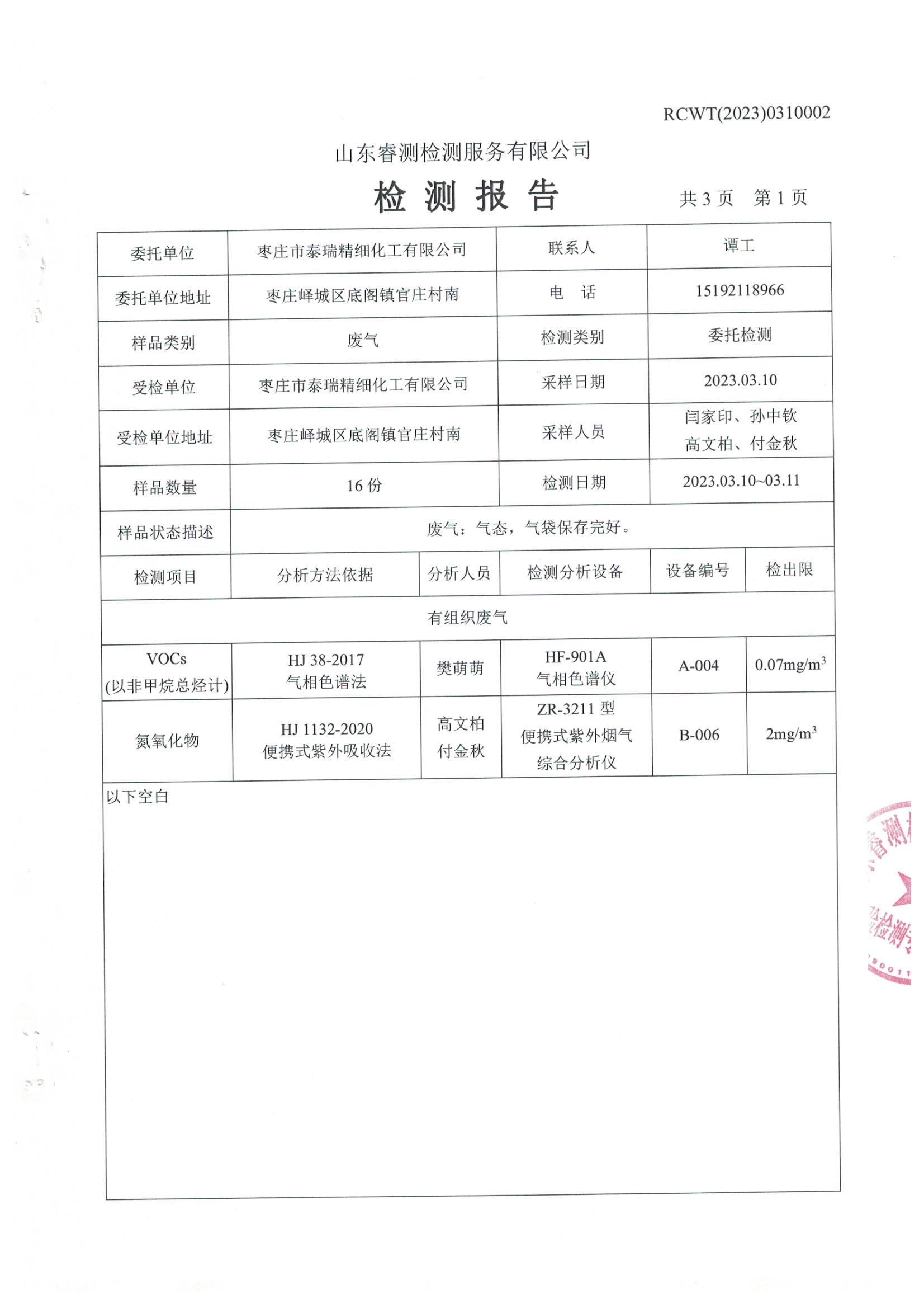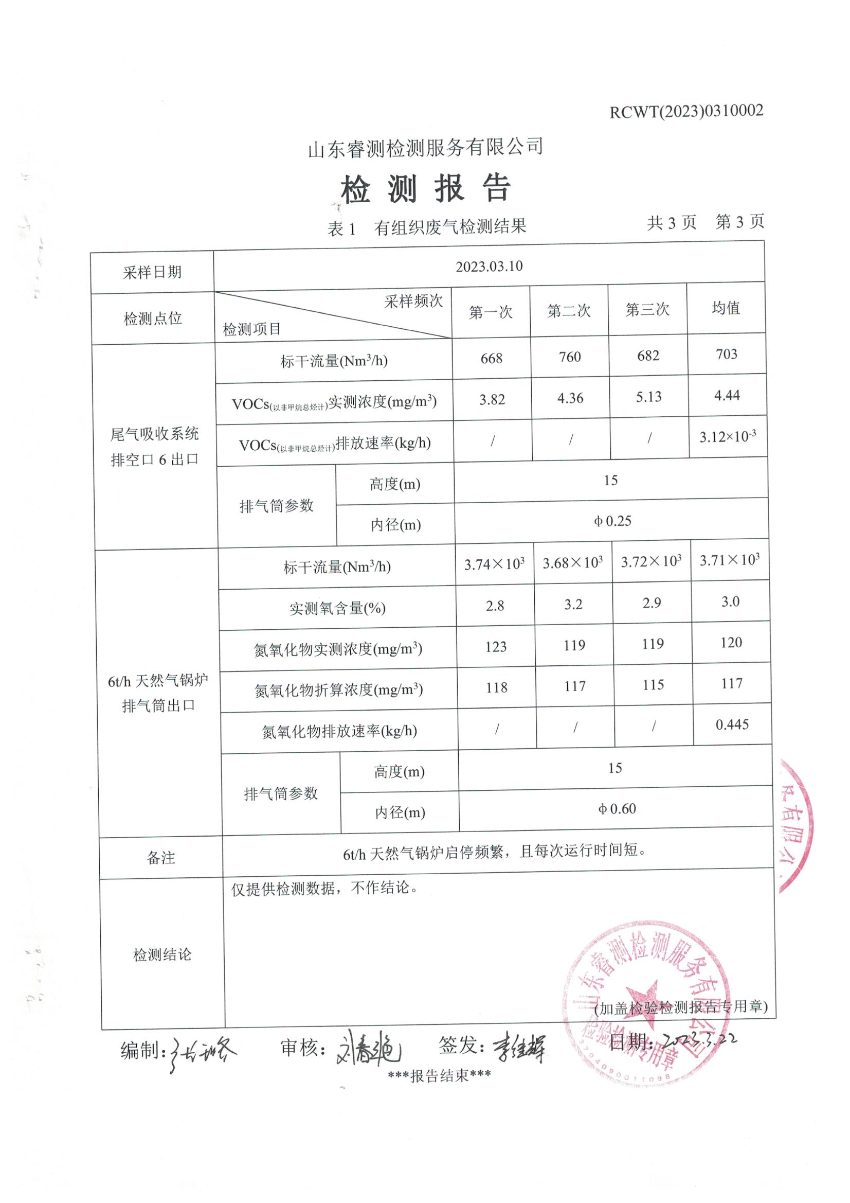 2023年3月份自行檢測(cè)報(bào)告