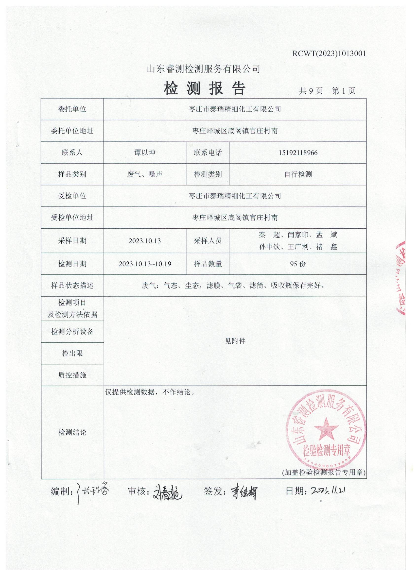 2023年第4季度(11月份)檢測報(bào)告