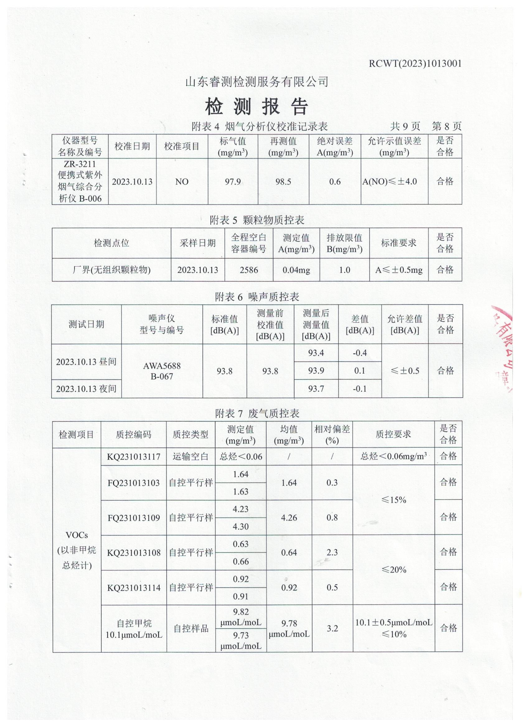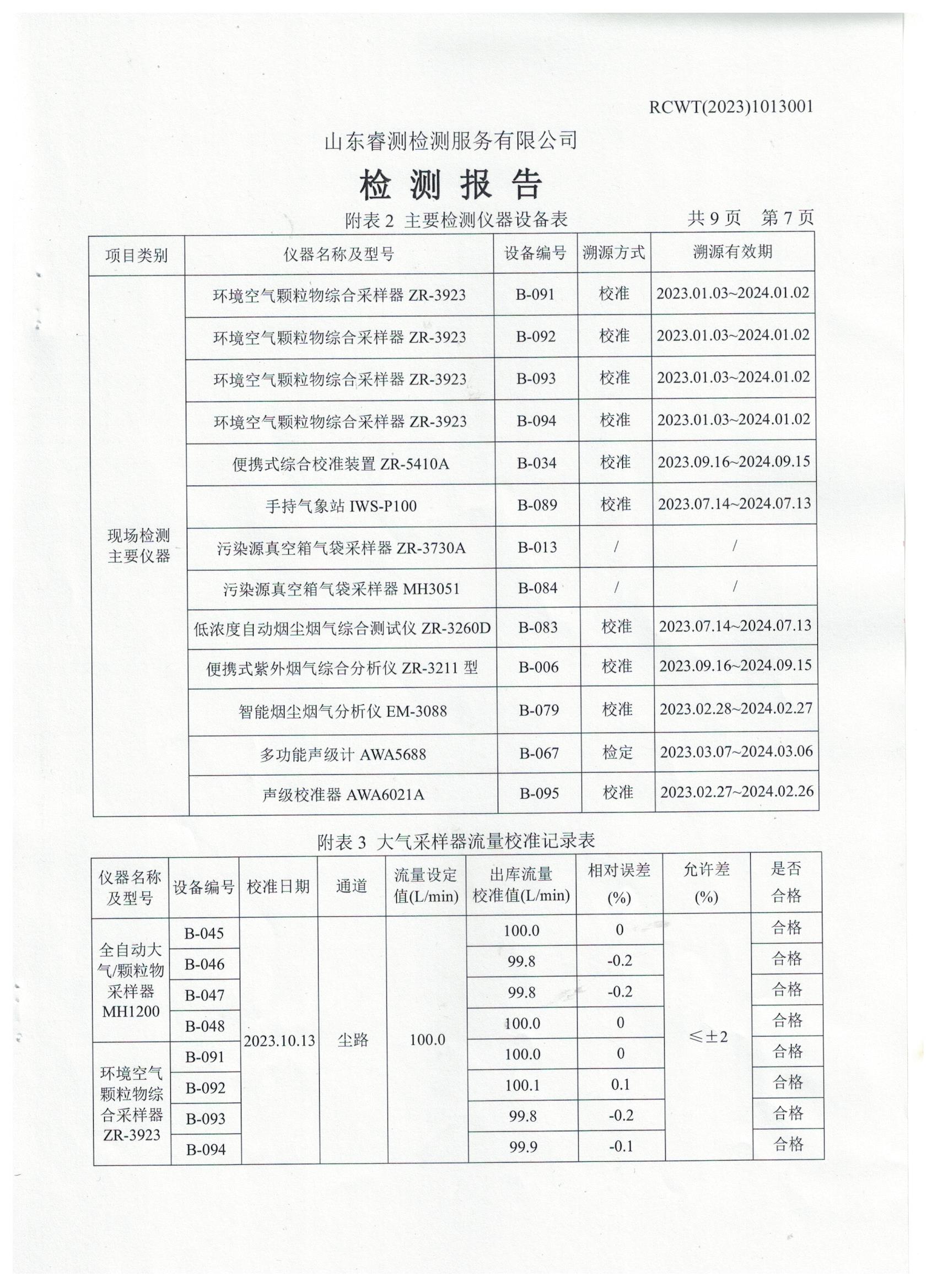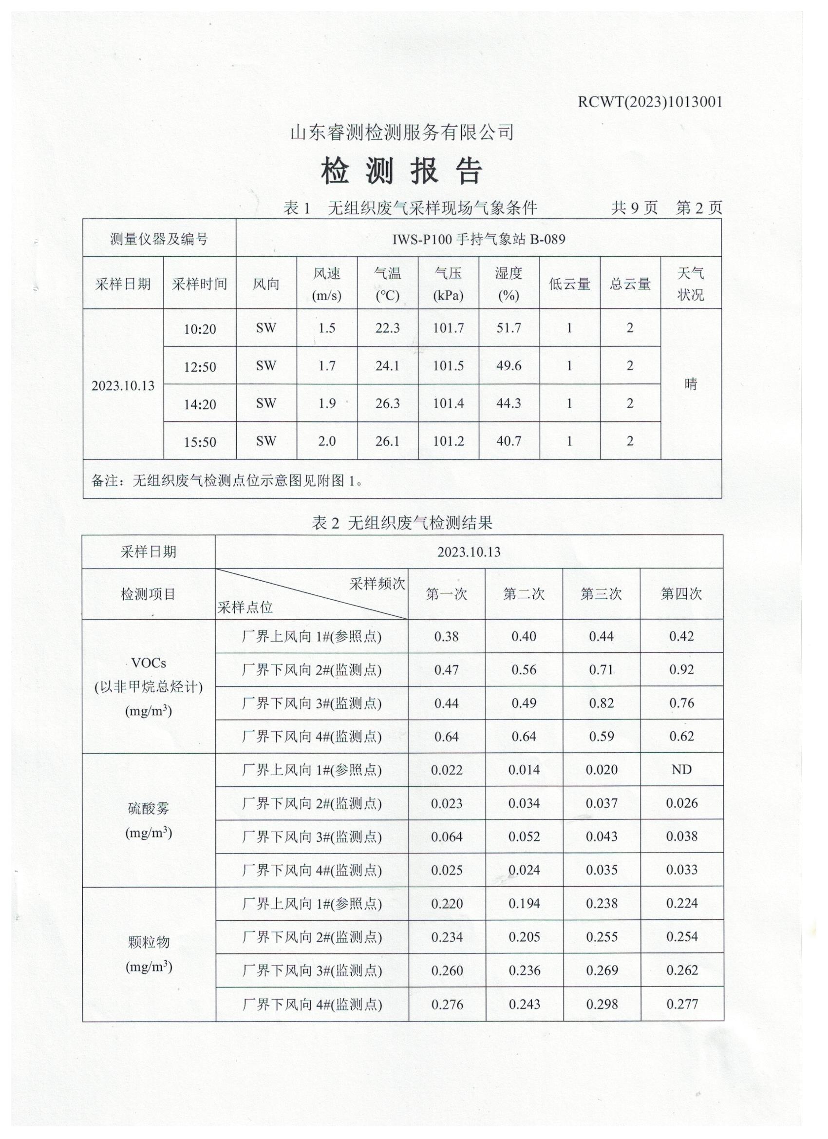 2023年第4季度(10月份)檢測報(bào)告