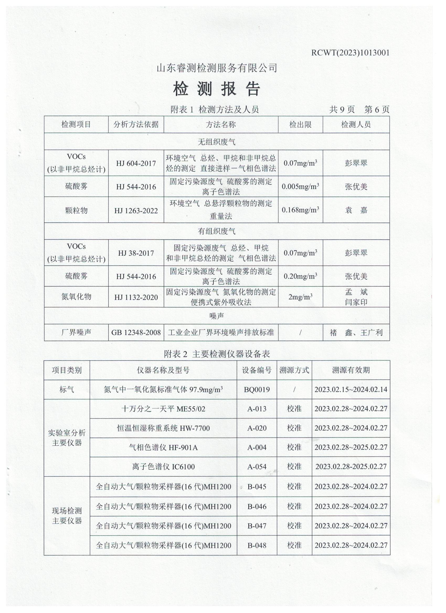 2023年第2季度(4月份)檢測報(bào)告